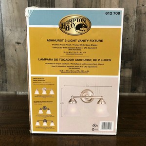 Hampton Bay 2-Light Bathroom Vanity Light Fixture in ... from s7d2.scene7.com Featuring etched glass shades, clean simple lines and a sharp and sleek chrome finish this transitional styled light will complement a variety of decor styles from traditional to contemporary. The hampton bay andenne collection exhibits traditional style vanity lighting that will upgrade your bathroom or powder room with elegant style. The brushed nickel finish is ideal for blending in with